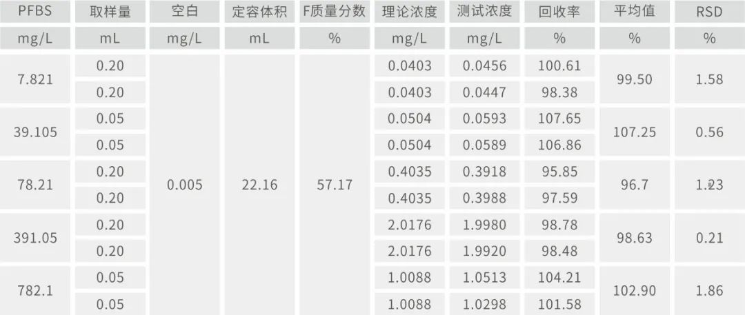 目前检测全氟化合物的主要方法有LC-MS/MS等,由于全氟化合物种类繁多,且以上仪器的定性分析通常依赖于标准品和数据库进行比对和确认,如果目标化合物不在数据库中,或者没有相应的标准品,定性分析会受到限制,导致部分化合物未能识别或漏检。采用燃烧炉燃烧的方式,将所有氟化物转化为氟离子进行检测,再结合LC-MS/MS等检测数据比对,既能较好的对全氟化合物进行定性定量分析,也能确认是否有全氟化合物未被检测到。